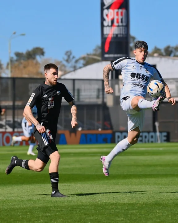En un desarrollo parejo, el Blanquinegro abrió el marcador a los 34 minutos. El arquero Ignacio Arce sacó largo, Herrera bajó la pelota y cedió para Alonso, que con un potente remate venció a Aguerre y puso el 1-0.