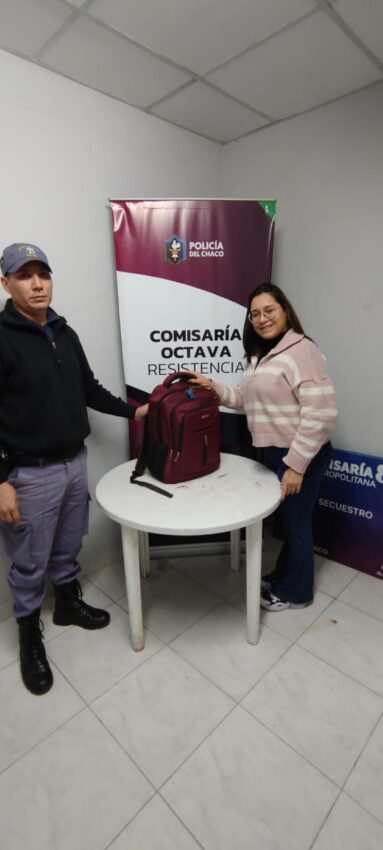 Tras el alerta a las autoridades, intervino de inmediato personal del Servicio Externo de la Comisaría Octava de Resistencia. En una rápida acción, efectivos que patrullaban la zona a bordo de una motocicleta (HT-124) lograron localizar la mochila abandonada en inmediaciones de una laguna cercana al Barrio Luchemos Juntos.
