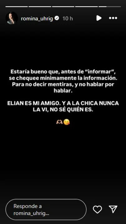 Uhrig fue contundente al aclarar cuál es su vínculo con el artista: «Elián es mi amigo. Y a la chica nunca la vi, no sé quién es».