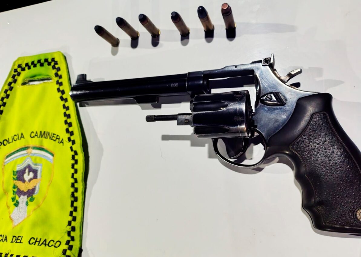 En un control vial sobre ruta nacional N°95 Km 1115, lograron secuestrar un arma de fuego tipo revolver, marca Taurus, calibre 38 y 6 cartuchos del mismo calibre, que eran transportados por un hombre de 40 años. El mismo no contaba con las documentaciones que acredite propiedad.