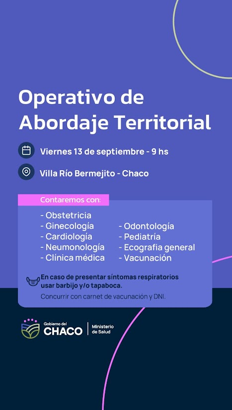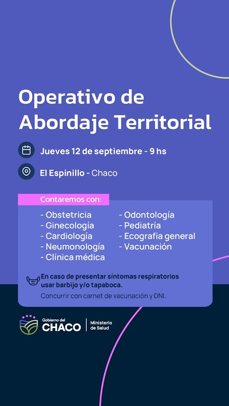 Este miércoles, jueves y viernes el Ministerio de Salud llevará a cabo nuevos Operativos de Abordaje Territorial en Juan José Castelli, El Espinillo y Villa Río Bermejito.