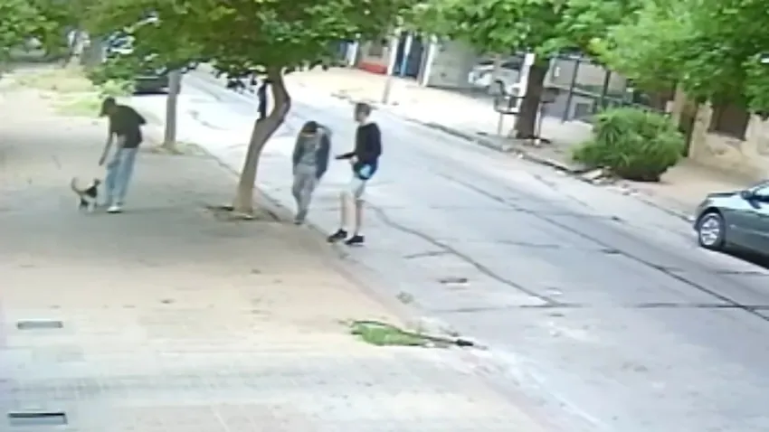 Uno de los individuos maltrató a un gato, tomándolo de la cola y lanzándolo violentamente al aire, mientras sus cómplices intentaban forzar portones en edificios cercanos.