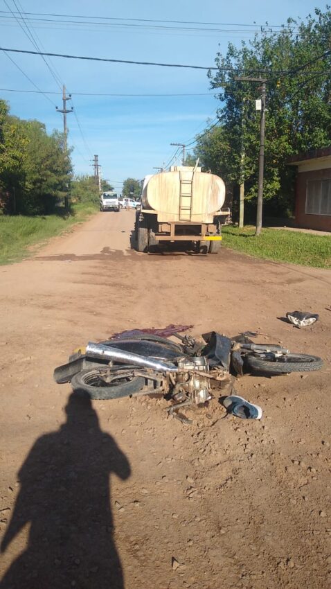 Un trágico accidente de tránsito ocurrió esta mañana en la localidad de San Martín, donde un motociclista perdió la vida tras colisionar con un camión cisterna perteneciente al municipio. El hecho se registró alrededor de las 08:20 en la intersección de las calles Donovan y Monseñor.