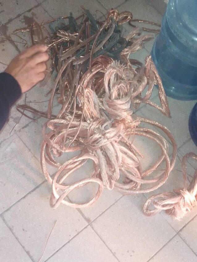 Durante el procedimiento, las autoridades lograron el secuestro de tres bolsas con restos de cables de alumbrado, los cuales, tras ser pesados, arrojaron un total de 40 kilogramos de cobre. Los elementos incautados fueron: