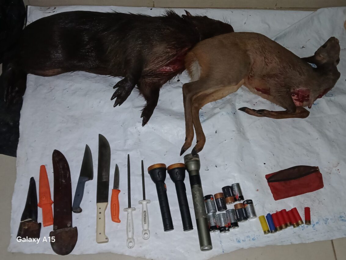 Los rurales solicitaron la documentación habilitante para la actividad de caza, estos manifestaron no poseer los permisos correspondientes. Por tal motivo, se procedió al secuestro de un machete, dos cuchillos, tres linternas, ocho cartuchos calibre 16 y el decomiso del producto cárnico.