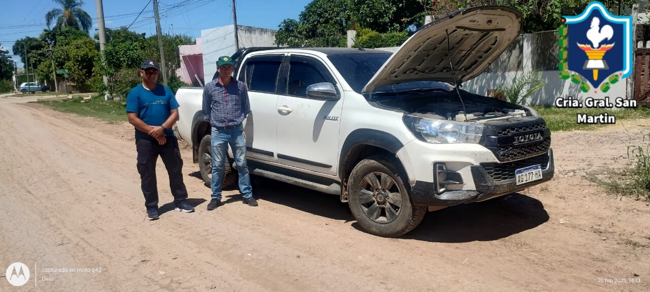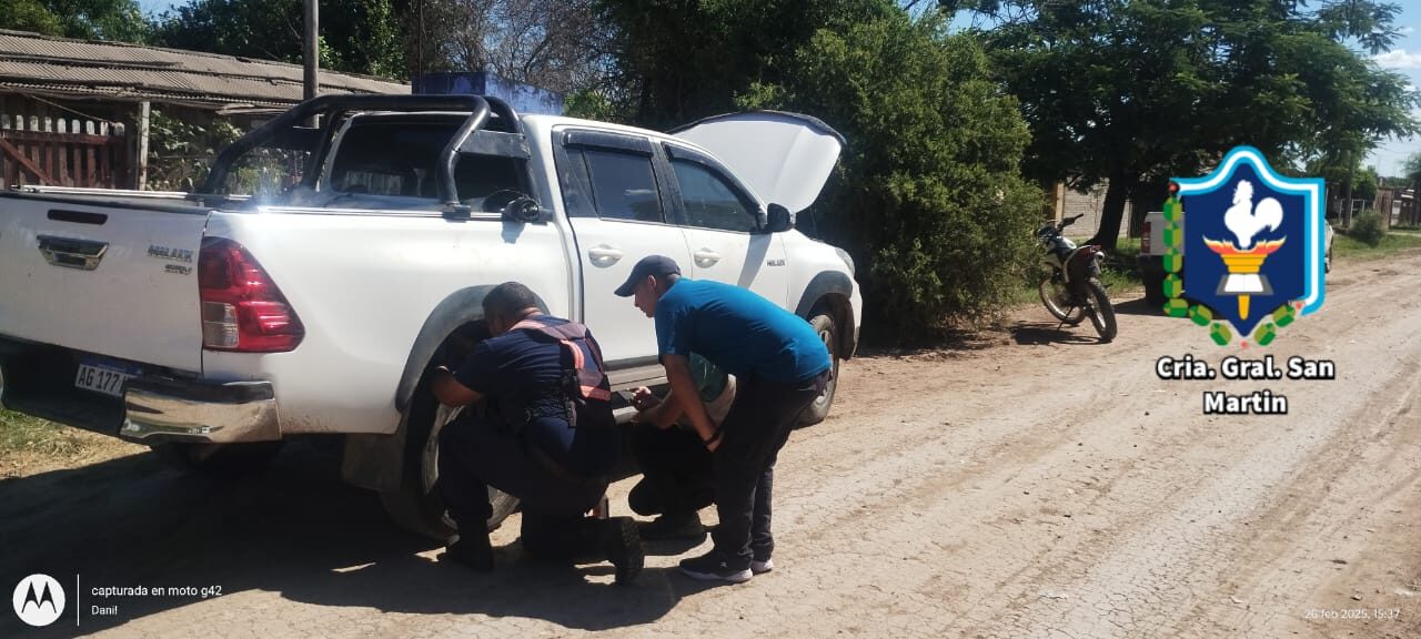 Durante el operativo, se detectó una camioneta Toyota Hilux, color blanco, dominio AG177HA, estacionada en un domicilio sobre calle Maipú, entre Ducca y Av. Lavalle,