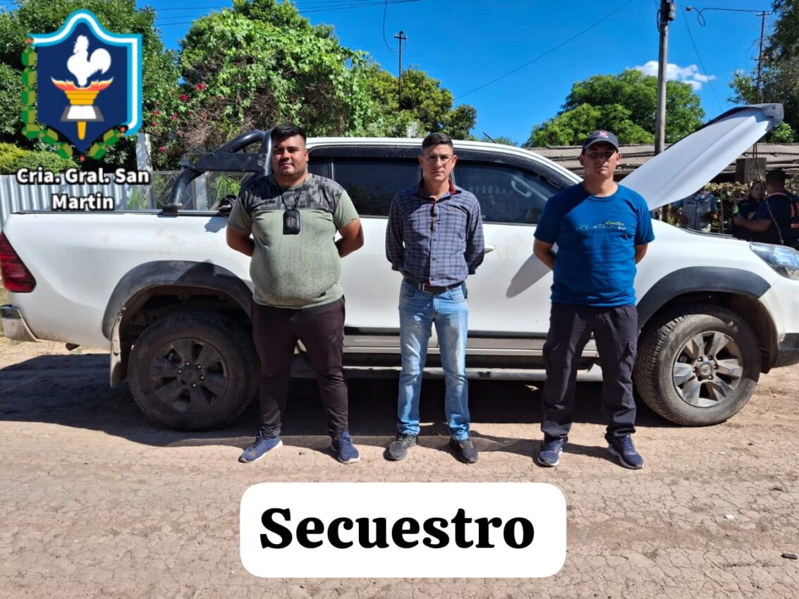 Durante el operativo, se detectó una camioneta Toyota Hilux, color blanco, dominio AG177HA, estacionada en un domicilio sobre calle Maipú, entre Ducca y Av. Lavalle,