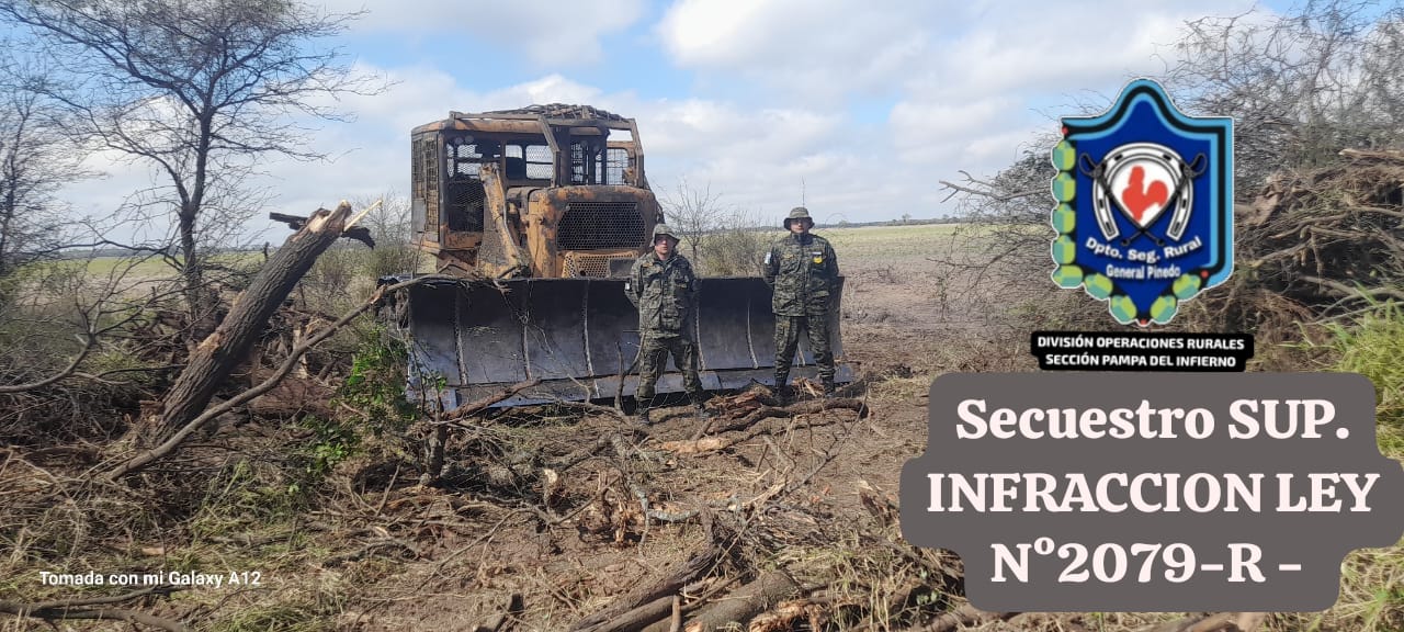 Ante esta situación, se procedió al secuestro de la maquinaria y herramientas utilizadas en la faena. Posteriormente, el inspector de la Dirección de Bosques, Víctor Galeano, dispuso que los elementos incautados sean trasladados al corralón municipal de Pampa del Infierno para quedar a resguardo.