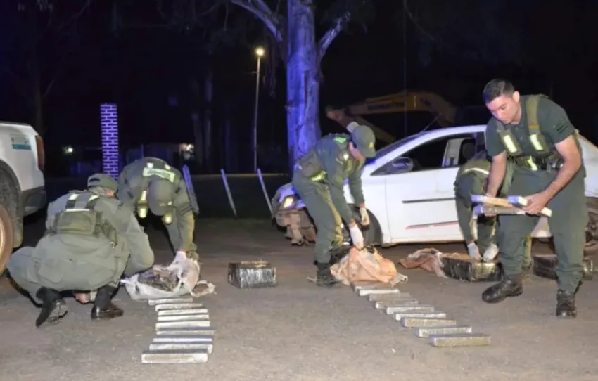 Los efectivos, tras un seguimiento controlado, hallaron el vehículo abandonado en un camino secundario. Al inspeccionar el interior, encontraron 10 bultos con 230 paquetes rectangulares que contenían una sustancia vegetal de color verde amarronado.