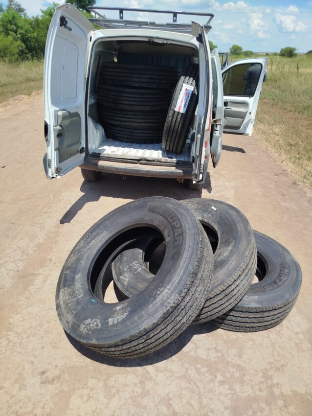 Al identificar al conductor, un hombre de 33 años, este manifestó transportar cubiertas, exhibiendo una documentación comercial que consistía únicamente en un remito sin fecha ni monto. Al verificar la carga, se constató el transporte de ocho cubiertas nuevas para camión, rodado 295/80 R22.5, de origen extranjero.