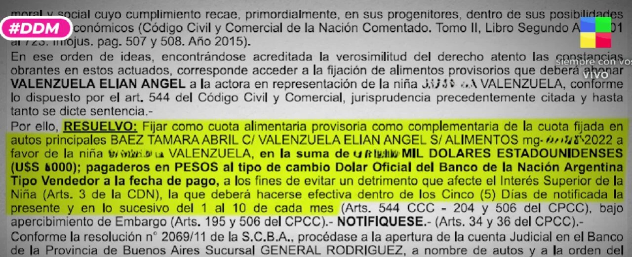 Este incumplimiento del artista para con la madre de su hija llevó a que la Justicia le embargue artículos de valor hasta que se resuelva la situación: “En el último tiempo, no solo se embargaron temas musicales. Hay embargados dos vehículos de Valenzuela por no pagar la cuota y tenemos el documento de lo que resolvió la Justicia», contó el periodista.