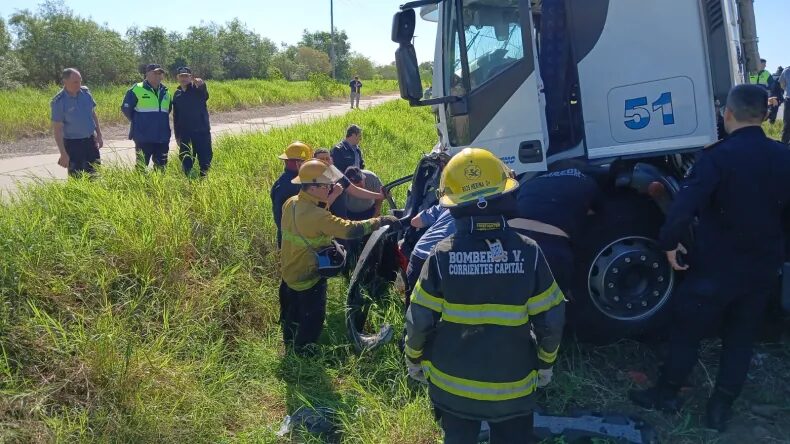 Según las primeras informaciones, el accidente se habría producido luego de que el automovil intentara un adelantamiento y se encontrara de frente con el camión.