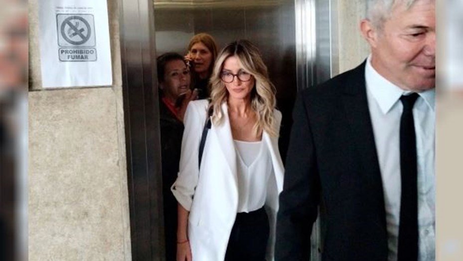 La modelo ingresó junto a Fernando Burlando a la fiscalía de González en el quinto piso de Comodoro Py 2002 para declarar bajo juramento de verdad en relación a si vio agresiones durante su paso laboral o privado por la residencia de Olivos.