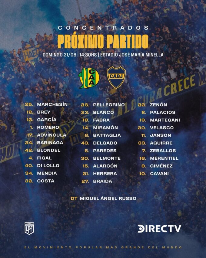 La lista de contrados de Boca para enfrentar a Aldosivi
