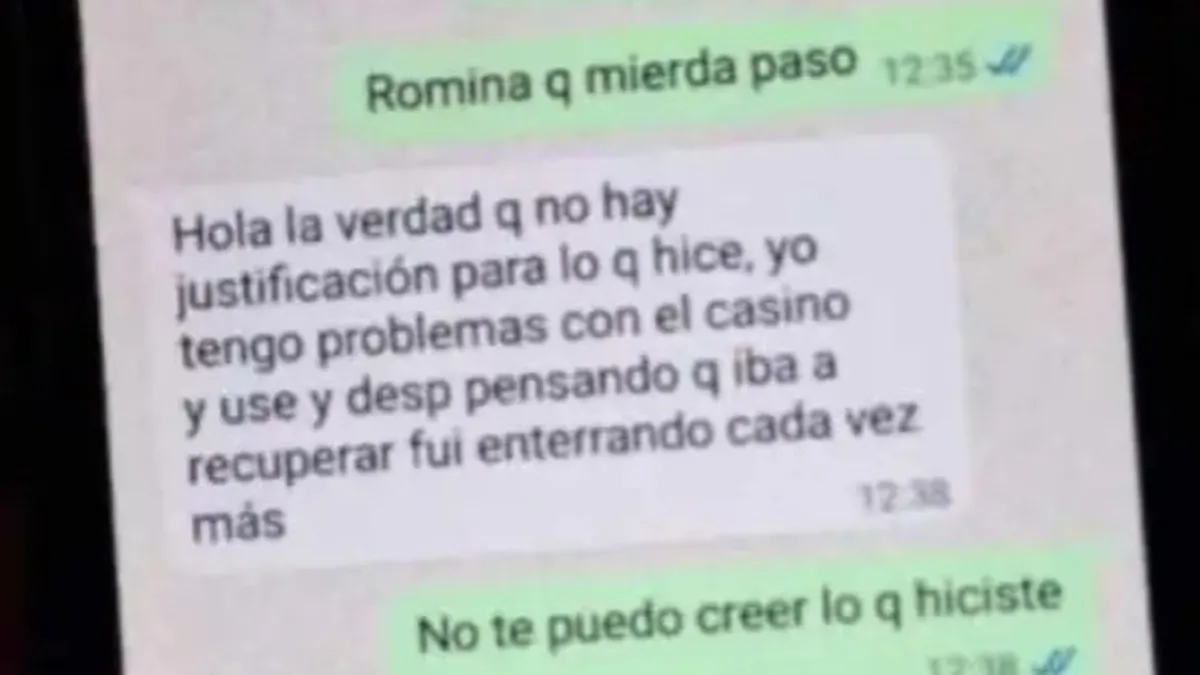 “La verdad, no hay justificación para lo que hice. Tengo problemas con el casino y usé (la plata) y después, pensando que iba a recuperar, fui enterrando cada vez más”, escribió la mujer, quien en mensajes posteriores aseguró estar tramitando un préstamo para devolver el dinero.