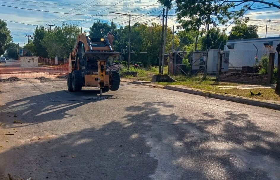 Por disposición del intendente, Fernando Cuadra, y en colaboración con la Dirección de Vialidad Provincial, se llevaron a cabo trabajos de bacheo y reparación de cordones en el sector de 222 Viviendas y por Av. Güemes.