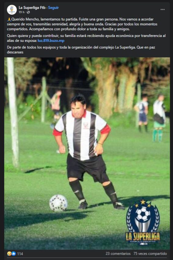 Además de las muestras de afecto de sus compañeros y amigos, los organizadores del torneo informaron que los allegados a «Mencho» han abierto una cuenta para recibir ayuda económica. Las donaciones pueden realizarse mediante una transferencia a través de un alias bancario proporcionado por su esposa.
