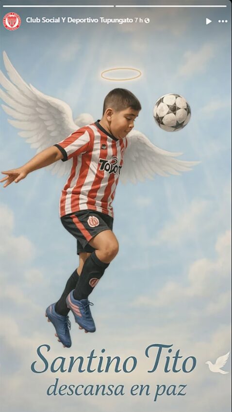 El Club Social y Deportivo Tupungato, al enterarse del accidente fatal, emitió un comunicado en sus redes sociales en memoria del menor: “Desde la gran familia del Club Social y Deportivo Tupungato queremos expresar nuestro más profundo y sincero pesar por la dolorosa partida de Santino Tito”.