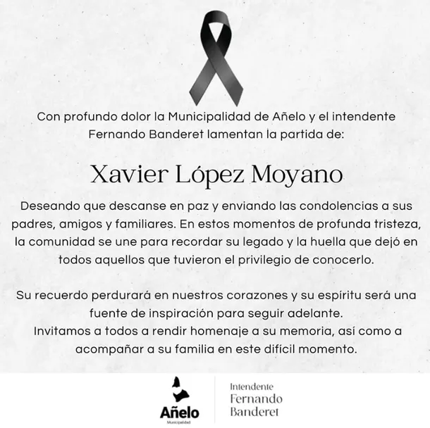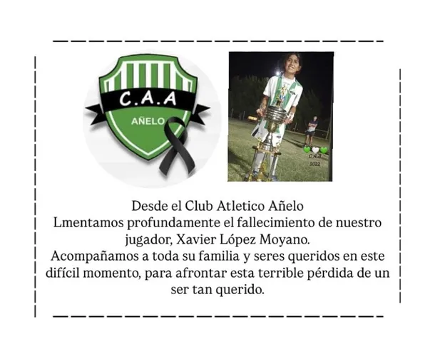 Por su parte, el club Atlético Añelo, donde Xavier jugaba al fútbol, manifestó: “Lamentamos profundamente el fallecimiento de nuestro jugador. Acompañamos a toda su familia y seres queridos en este difícil momento, para afrontar esta terrible pérdida de un ser tan querido”.