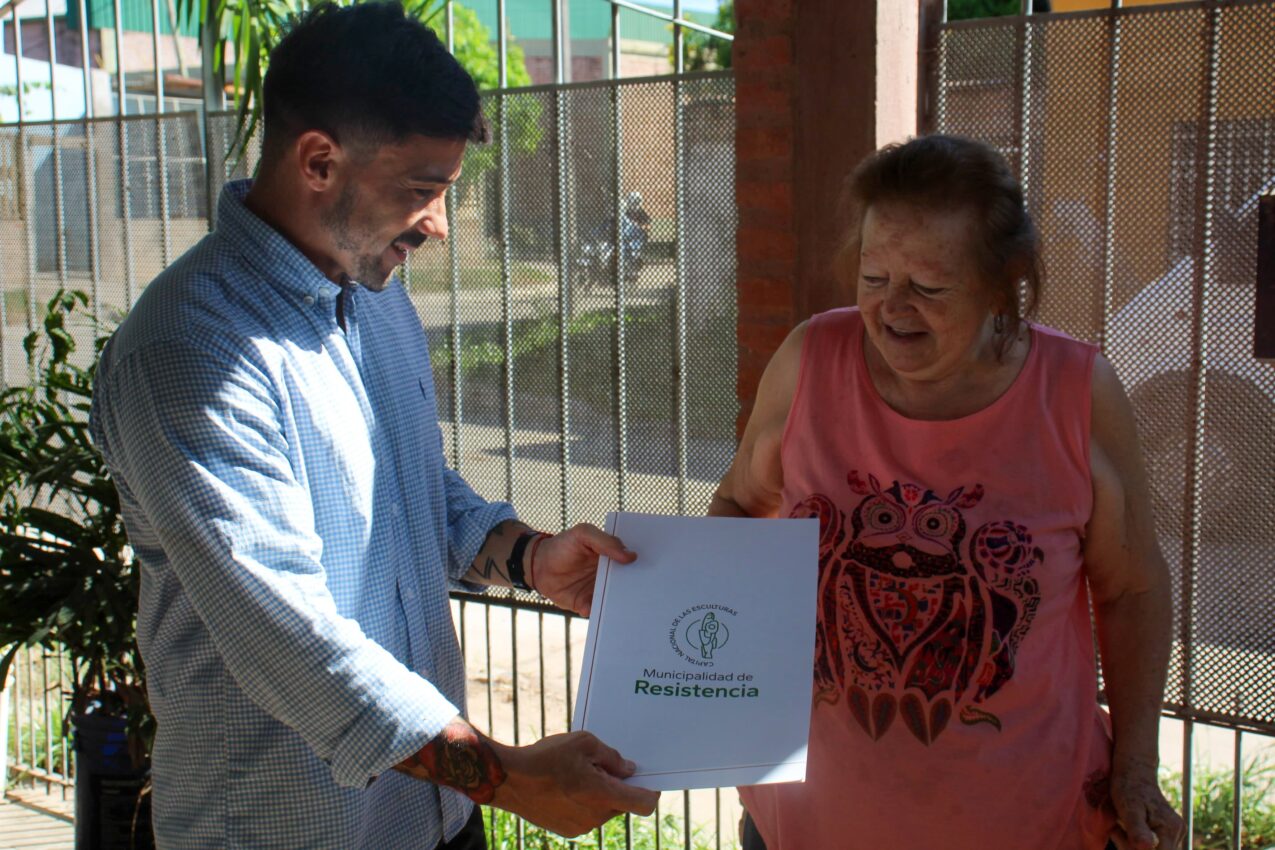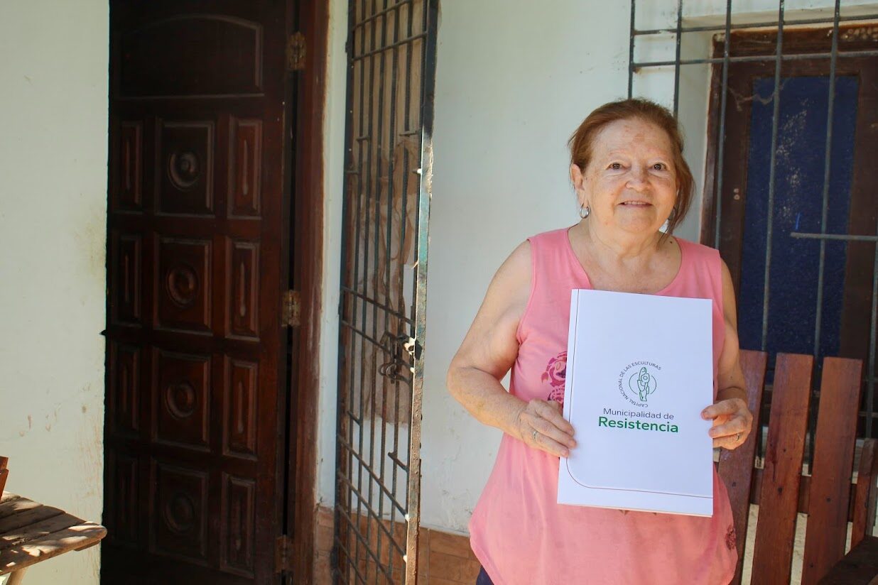 Yolanda Patricio fue la beneficiaria número 147 de la gestión municipal actual, que sumó la entrega del título directamente en la puerta de la propietaria.