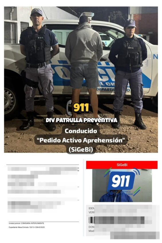 Horas más tarde, cerca de las 2:55, personal de la División Cuerpo de Operaciones Motorizadas (C.O.M.) del Departamento 911 patrullaba la intersección de avenida Marconi y calle Misionero Klein, en Resistencia, cuando identificaron a un sujeto de 28 años. Mediante el sistema SIFCOP, detectaron que poseía un pedido de captura vigente, emitido por la Cámara Tercera en lo Criminal de la Primera Circunscripción Judicial del Chaco, en el marco de una causa por violación de domicilio y privación ilegítima de la libertad. Fue trasladado a la División Medicina Legal y luego a la Comisaría Cuarta, por cuestiones de jurisdicción.