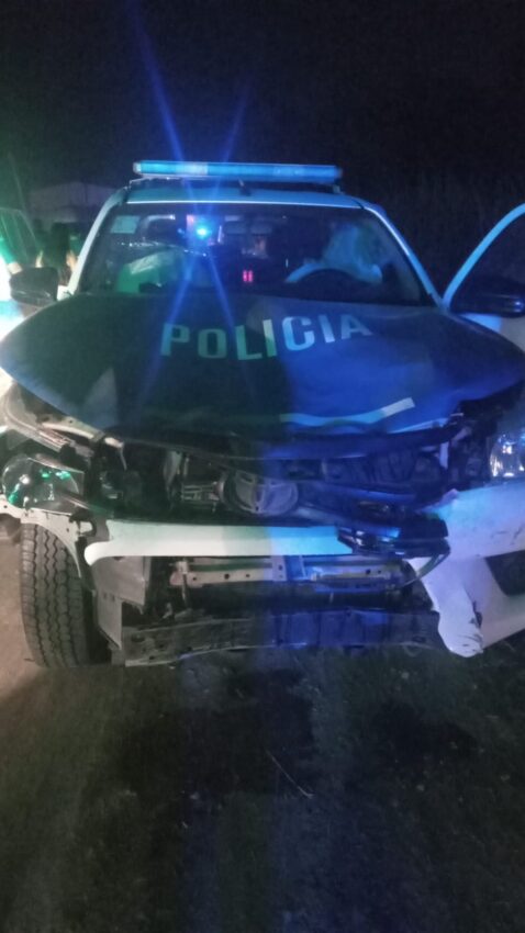 El segundo episodio se registró casi en simultáneo, cuando efectivos de la Comisaría Tercera de Fontana acudían a una colaboración solicitada por la Cuarta Metropolitana, debido a un presunto enfrentamiento armado. En el trayecto, con balizas y sirena activadas, el móvil policial colisionó con una motocicleta Honda Wave 110 cc, conducida por L. D. L. (25), quien también fue derivado al hospital Perrando con traumatismo encéfalo craneano y facial.