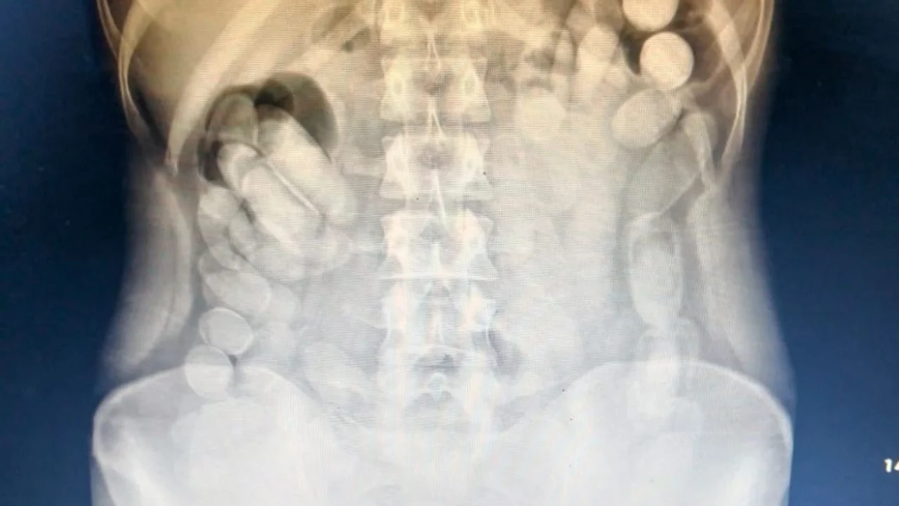 Una vez en el Nosocomio local, se le realizó una radiografía a la mujer mediante la cual se pudo observar la presencia de las dosis en su abdomen. Más tarde, la involucrada evacuó 106 cápsulas.
