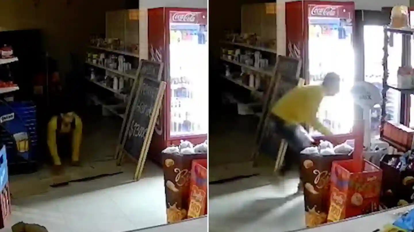 Un delincuente entró gateando a un almacén para robar cigarrillos y vodka. El ladrón actuó junto a un cómplice y el episodio quedó registrado por una cámara de seguridad instalada en el local.