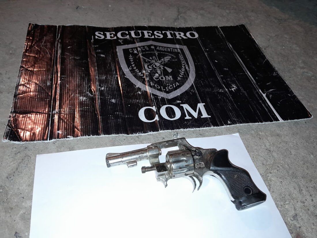 Tras una rápida intervención, los efectivos lograron identificar y demorar a un hombre que coincidía con las descripciones aportadas. Se trata de J. D. G., de 36 años, con domicilio en el mismo barrio, quien al momento de la requisa portaba en la cintura, oculto bajo sus prendas, un revólver calibre 22 largo, con inscripción “GALAND M.R”, cromado, número de serie 94236, con capacidad para ocho alveolos.