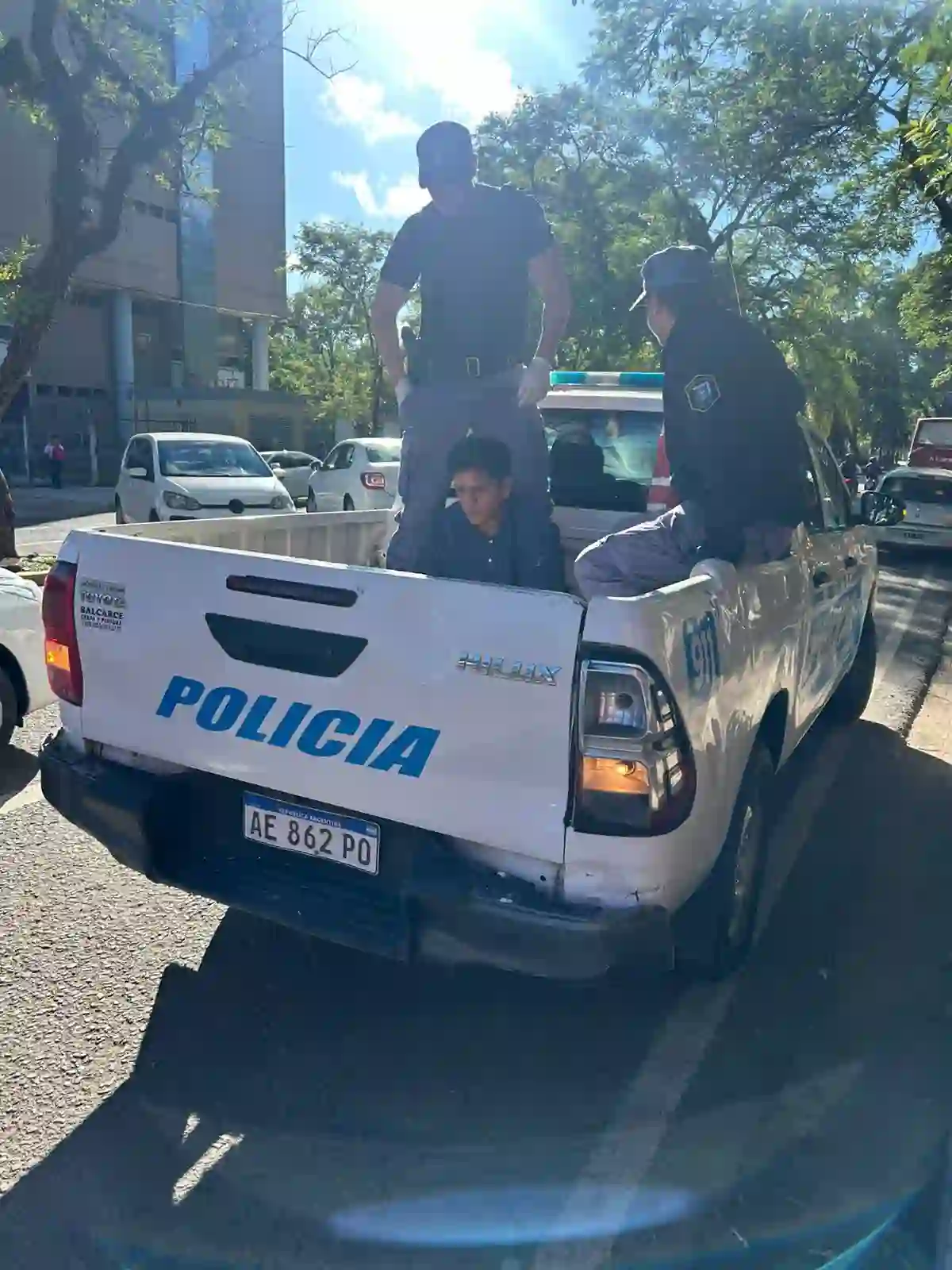 Una ambulancia del servicio de emergencias arribó al lugar, a cargo del enfermero M. L., pero la mujer se negó a ser examinada. Acto seguido, llegó un móvil de la Comisaría Segunda, aunque al intentar trasladarlo, el hombre comenzó a golpear la luneta del vehículo con su cabeza, manifestando que no quería permanecer cerca de la mujer.