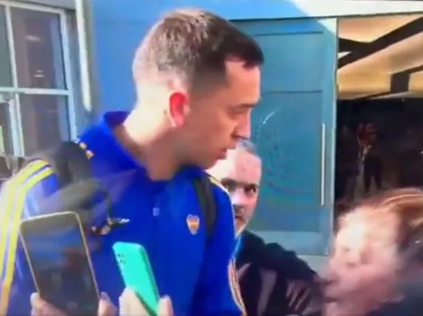 Entre saludos, fotos y pedidos, se produjo un momento incómodo que tuvo como protagonista al arquero Agustín Marchesín. Mientras saludaba cordialmente a una señora que le había pedido una selfie, fue sorprendido por un joven hincha que lo palmoteó con fuerza en la espalda y, en una actitud poco habitual, le acarició bruscamente la cabeza.