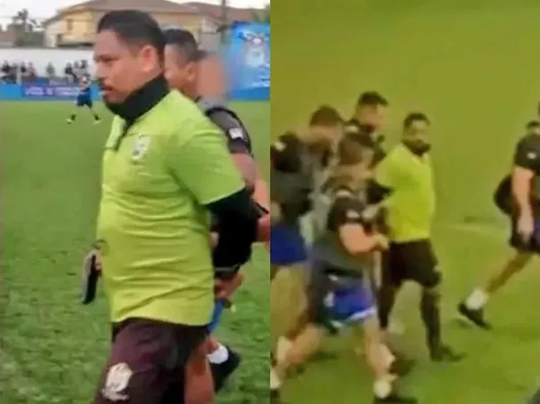 El hecho ocurrió en una cancha del barrio Vila Ligya. En el momento exacto en que el árbitro mostraba una tarjeta amarilla, un grupo de agentes de la Policía Civil ingresó al trote al campo, lo esposó y lo retiró del lugar sin mayores incidentes. La escena, que rápidamente se viralizó en redes sociales, sorprendió a todos los presentes y dejó al descubierto una investigación que llevaba varios meses en curso.