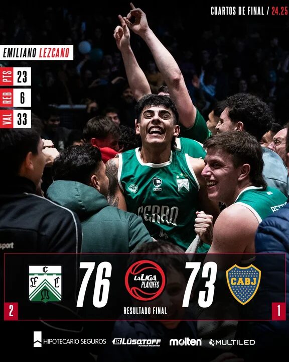 En el marco de los cuartos de final de la Liga Nacional de Básquet, Ferro le ganó 76-73 a Boca este miércoles por la noche, con un tiro espectacular de aro a aro, y sobre la chicharra, de Emiliano Lezcano.