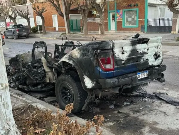 Las cámaras de seguridad captaron el momento exacto del ataque: un hombre con campera verde, gorro negro con franjas blancas y pantalón oscuro, fue grabado rociando el costado izquierdo de la camioneta con un bidón y prendiéndola fuego. Inmediatamente después, el individuo huyó corriendo sin ser identificado.