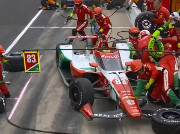 El accidente se produjo en las primeras 100 vueltas de la emblemática carrera de la IndyCar, justo cuando el joven piloto ingresaba a boxes para cumplir con su parada. La escena fue capturada por las cámaras y rápidamente se viralizó en redes sociales.