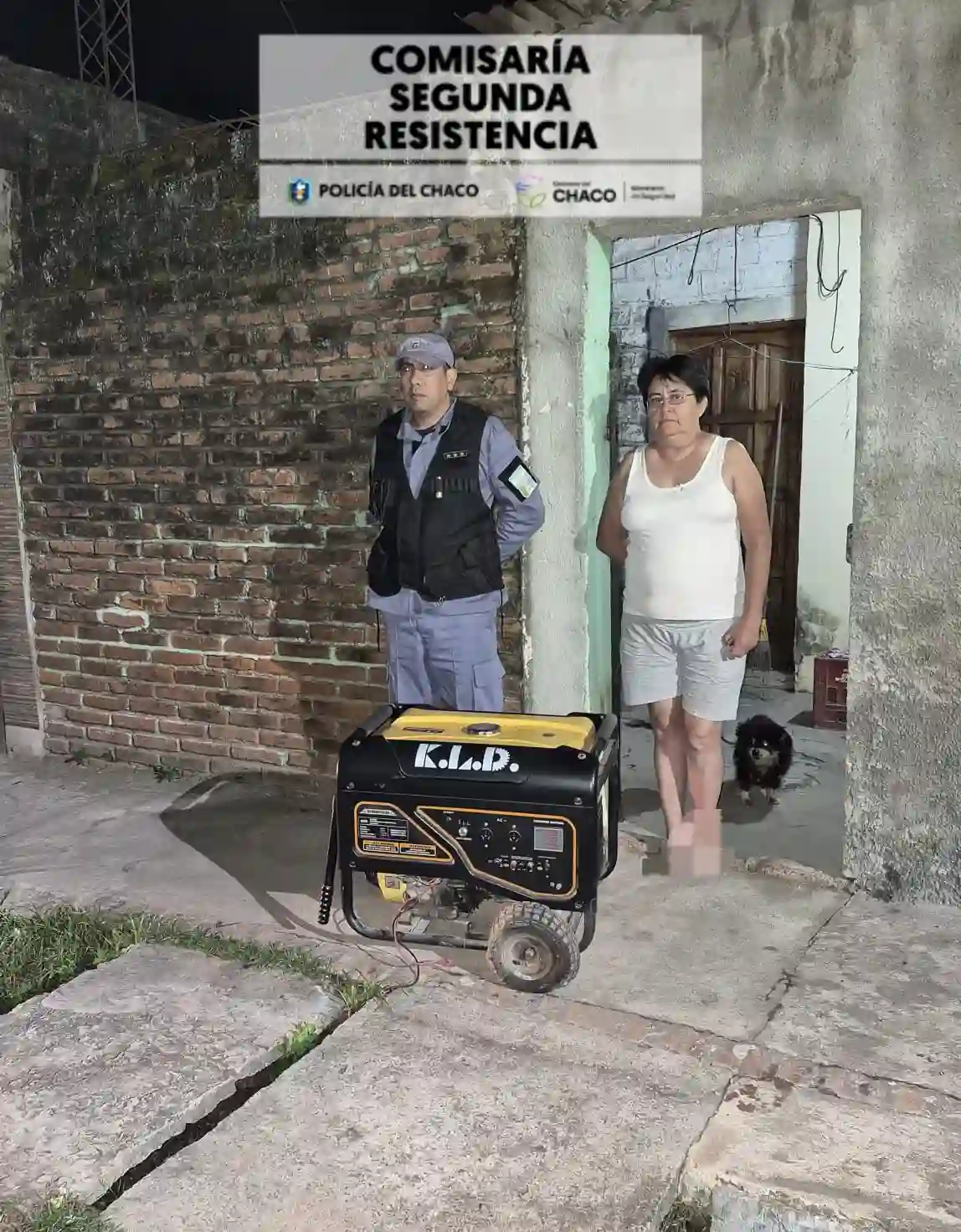 La mujer reconoció el bien como suyo y acreditó su propiedad, explicando además que es utilizado por su madre, persona electrodependiente. Por este motivo, el generador fue entregado de inmediato. Luego, se invitó a la ciudadana a radicar la denuncia correspondiente