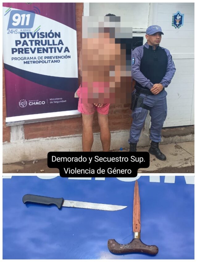 Durante el procedimiento, los uniformados secuestraron un cuchillo de unos 30 centímetros y un objeto de madera con punta afilada tipo “T”, que el detenido tenía en su poder.