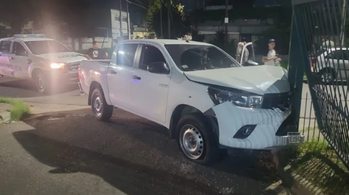 Luego de una intensa persecución, finalmente el ladrón que conducía la camioneta perdió el control e impactó contra las rejas de una casa.