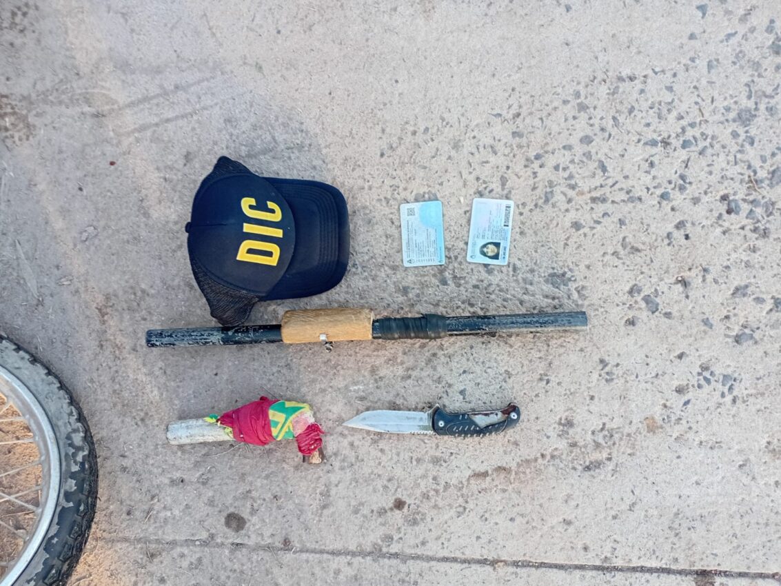 En el procedimiento se secuestró la motocicleta sustraída, otra motocicleta de similares características sin dominio, un arma de fuego de fabricación casera con un cartucho y un cuchillo.