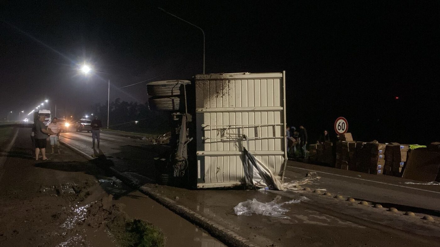 Volcó un acoplado cargado con postres lácteos en la Ruta 16: el chofer resultó ileso